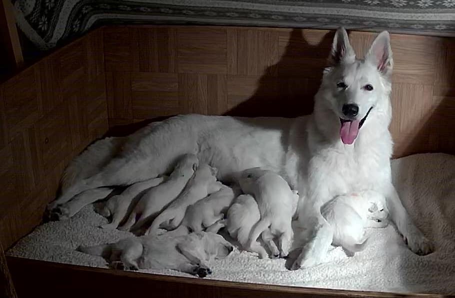 Es ist immer wieder wunderbar, eine Welpengeburt erleben zu dürfen. Das Glücksgefühl ist nicht zu beschreiben, wenn alles vorbei ist und die Hündin und ihre kleinen Baby´s müde, aber zufrieden in der Wurfkiste schlafen.